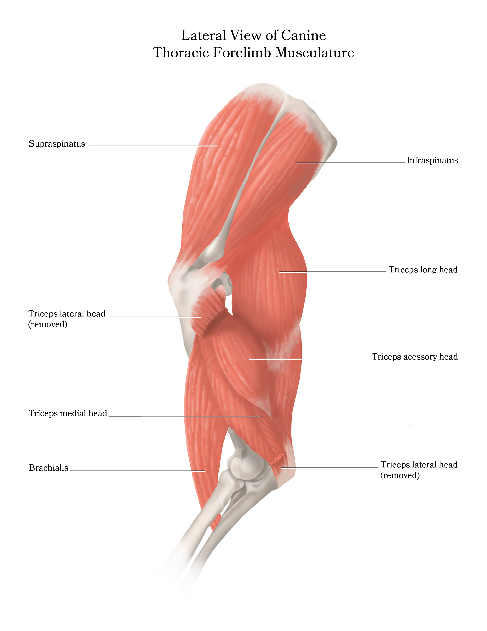 Lateral View of Canine Thoracic Forelimb Musculature, digital & graphite